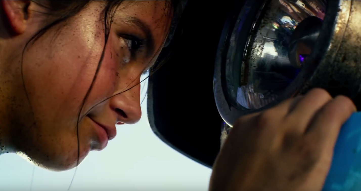 Those same pieces are seen floating in the sky, perhaps further away after destroying our moon. Who is that running through the junkyard? At first, I thought it was Isabela Moner, but the girl looks a little too tall. Could it be Nicola Peltz, who played Mark Wahlberg's daughter in Transformers: Age of Extinction?