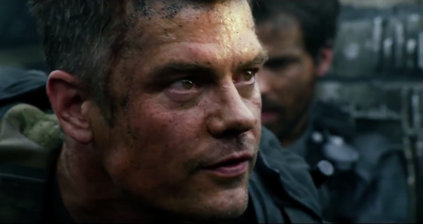 Flash forward again and this appears to be a present day shot of soldiers caught up in some explosive action. Exactly what they're up against, we can't be sure, but it could be a shot that has a part in another action sequence that pops up later in the trailer.
