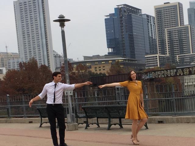But this is a promotional stunt of a very different flavor. Jordan Steele, a weatherman with KEYE-CBS and co-host of the We Are Austin morning show, steps into the white shirt and black tie of Ryan Gosling's Sebastian Wilder. Yelena Laningham, a local dancer, takes on Emma Stone's Mia Dolan. While Steele isn't a dancer, he trained with Laningham for weeks to recreate the "A Lovely Night" number from La La Land on the Lamar Bridge, a "pop-up" number that pays tribute to how how many classic movie musicals involve people breaking into song and dance in public.