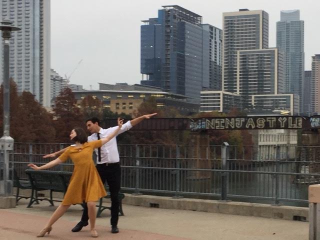 This news story begins with an anecdote. I arrived early for an interview during The Edge of Seventeen press and found myself killing time with the local PR folks. They told me they were working on a promotional campaign for the upcoming film La La Land. I suggested they take advantage of the fact that it's an old-fashioned musical. To my surprise, they ended up taking me very literally. So I'm pleased (and a little shocked!) to help premiere this lovely video, where a key scene from Damien Chazelle's Oscar frontrunner is recreated in public, with the Austin, Texas skyline as a backdrop.