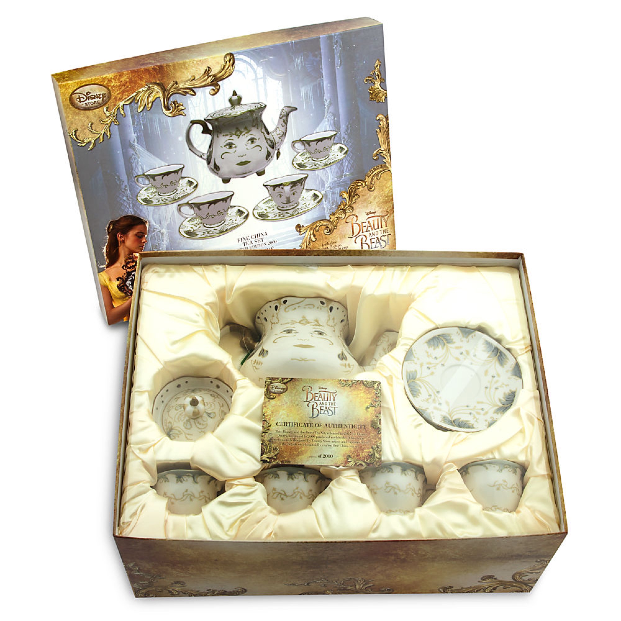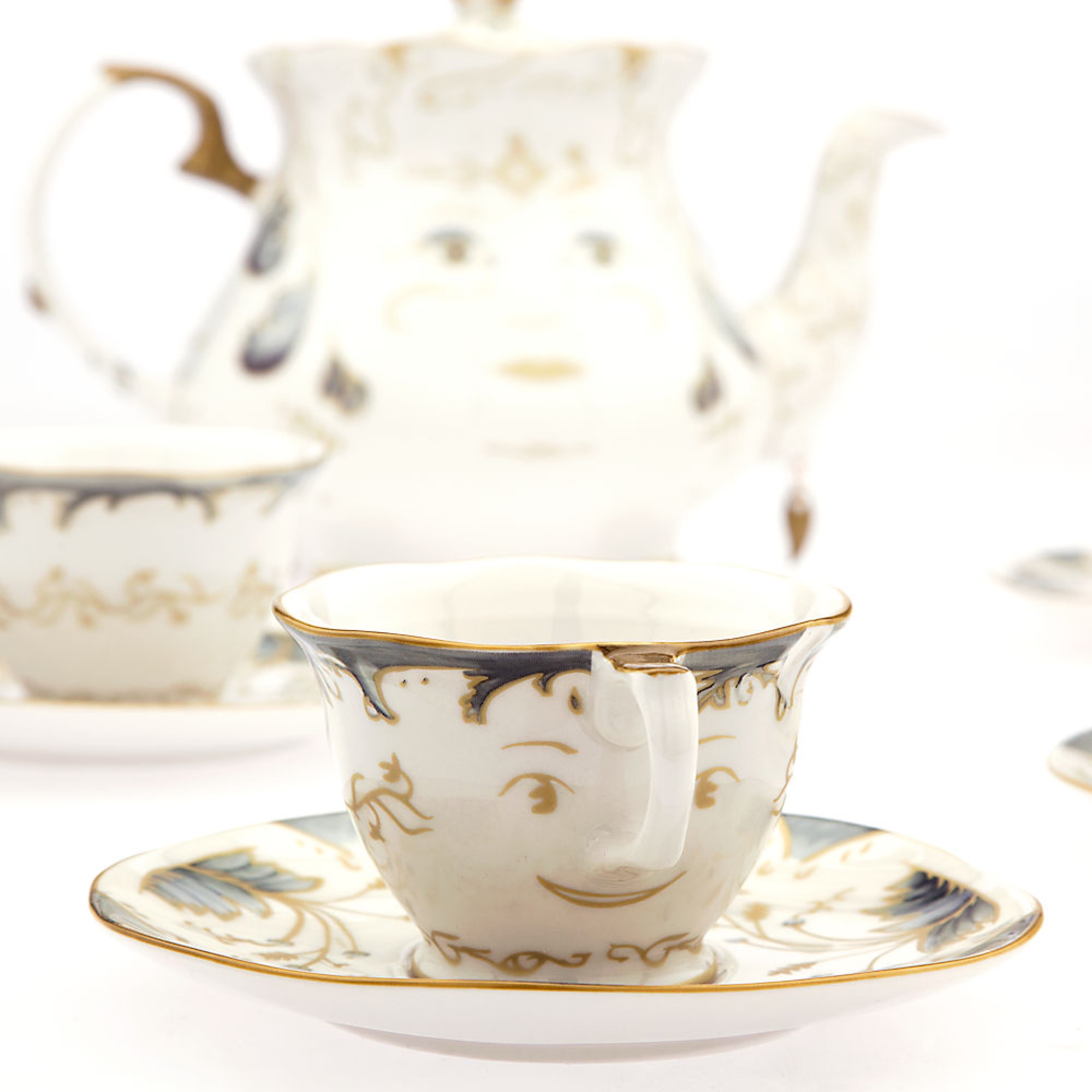 Romance brewing The dining room proudly presents this limited edition fine china tea set inspired by Disney's live action retelling of Beauty and the Beast. Be our guest and join Mrs. Potts and Chip for a deliciously delightful brew.