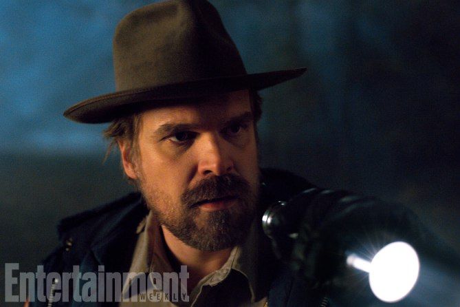 What exciting photos of all your favorite characters... that show us not very much at all about what we can actually expect from season two. The shot of the kids in their Ghostbusters costumes is cute — and it does look like they're staring at something interesting — but we already knew  what they were gonna dress as for Halloween. Maybe the most striking image is the one of Will Byers (Noah Schnapp), who seems uneasy around his classmates. All that said, I love Joyce and Nancy and Jonathan and especially Hopper, and I'm just glad to see them all again. I've gotta ask, though: where the hell is Steve? I miss that dude and his crazy hair.