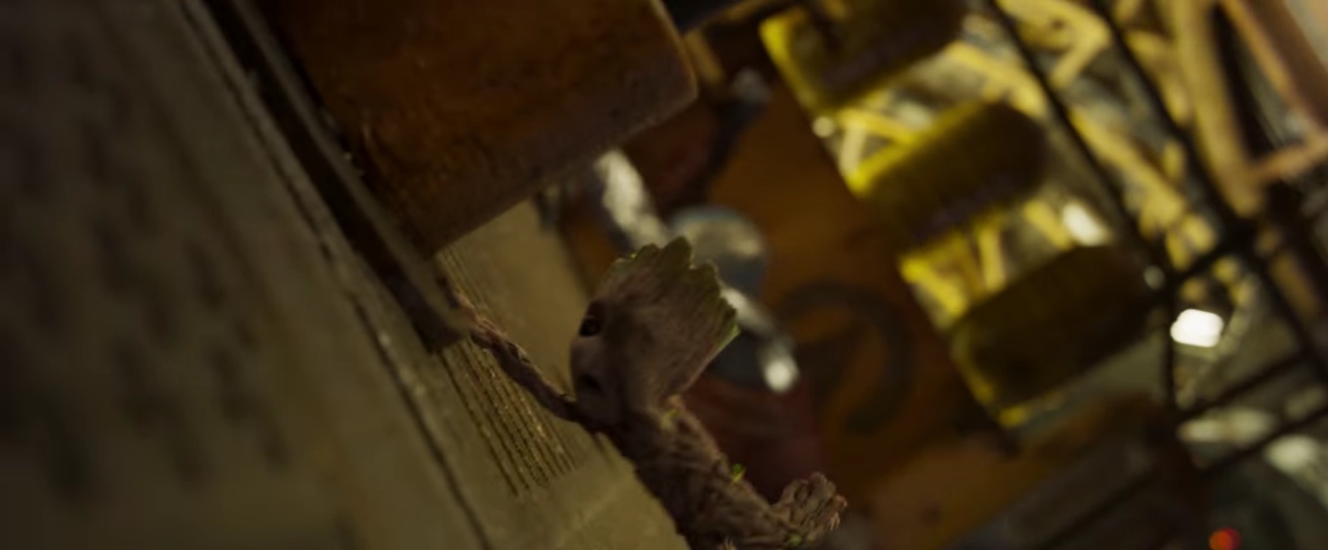 At the 0:15 second mark, our first sighting of Baby Groot!