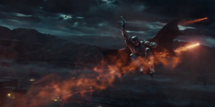 The first shot of the trailer takes us high in the mountains as snow blows around a single man and his horse. Jagged mountains fill the landscape being explored by this man as voiceover by Ben Affleck as Bruce Wayne ominously says, "We have to be ready. You, me, the others."