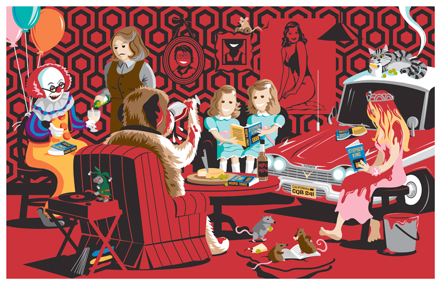 This year brings not one but two adaptations of Stephen King properties. We'll get The Dark Tower in August and then a new take on the horror classic It in September. Both titles are featured several times in Gallery 1988's new art show inspired by the various works by Stephen King. Other celebrated titles include but are not limited to Christine, Stand By Me, The Green Mile, Cujo, Misery, The Mist and more.
