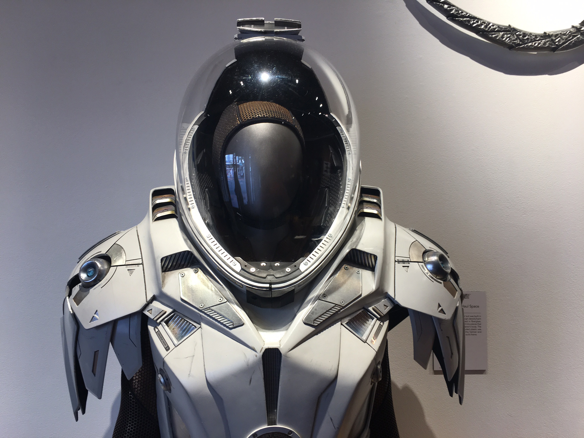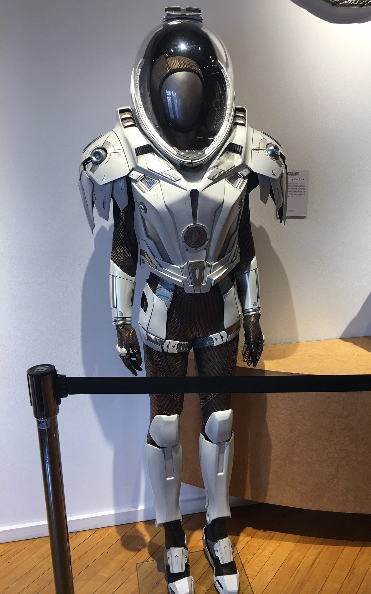The Starfleet Long Haul EV suit was built in the UK. It was milled from high-density foam as one unit and then draped in fiberglass. The suit was then sectioned into pieces that fit as a clamshell over the actor's body. The optically clear lens of extruded plastic were made from a 3D scan of the helmet and had to be perfect to fit the suit's frame. This is the suit that we see Sonequa Martin-Green wearing in space from the Star Trek: Discovery trailer.