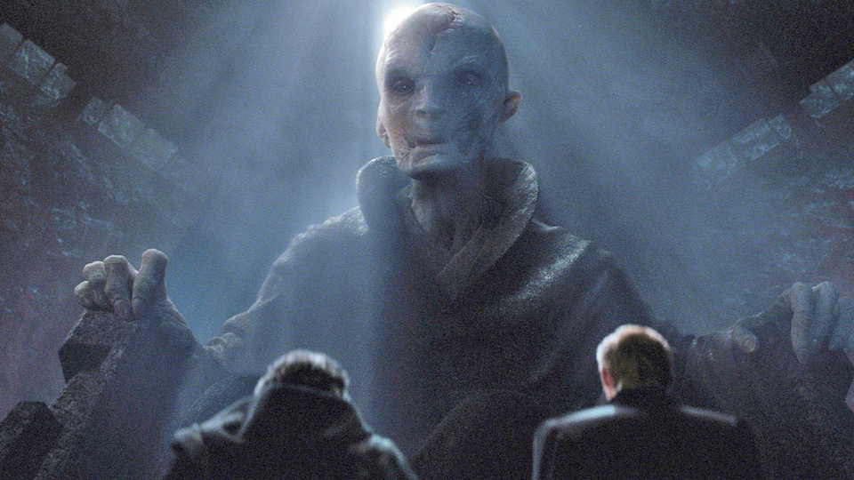 MakingStarWars has a detailed description and artist's rendering of Snoke in person and his beautiful blue eyes and creepy torn apart and wrinkled skin. Spoilers! They also have a sketch of Luke's costume and his walking stick, which hopefully hides his lightsaber inside because if it doesn't we'll riot.