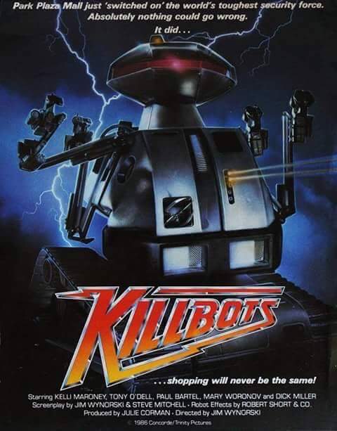 Kelli Maroney: So that's how I ended up in Chopping Mall. But the way the movie got made—before I was ever involved—was Jim Wynorski. He was the advertising director for [famed B-moviemaker] Roger Corman.Blake J. Harris: So prior to Chopping Mall, Jim hadn't directed any films?Kelli Maroney: He had done one movie [The Lost Empire, a low-budget flick about three beautiful women who "battle a male genius with diabolical plans"] but Roger didn't like it, and to hear Jim tell it, was never going to let Jim do another one. But then Roger was asked to produce a movie about a "killer in a mall," and Julie [Corman] suggested they give Jim another chance. So Julie said to Jim, "If you write this for me, you can direct it." So he and his friend Steven Mitchell sat down and wrote it and they made the killer a robot and he got to do it, for $750,000.Blake J. Harris: That's a pretty sizeable budget...all things considered.Kelli Maroney: Well, you know there's lasers in it? That the robot is shooting with? That cost $50,000 back in the day. And they had to spring for it because otherwise, what's the robot doing? Nothing.Blake J. Harris: That's a great point.Kelli Maroney: Robert Short who did Daryl Hannah's tail in Splash (and a whole bunch of other really cool special effects) did the robots. But there was a problem with the lasers: the robots couldn't fit on the escalators at the Beverly Center. So we ended up shooting at the Galleria. But if you look at the film, that's why the opening scene is set at the Beverly Hills Center (before the Galleria took us in).Blake J. Harris: And what was production like?Kelli Maroney: It was super low budget (we couldn't afford to have them shut down the mall) so when everything closed for the night we would go in there and shoot until the morning. And then we'd scramble to put everything back where it was in time for the mall to open. Barbara Crampton [who plays Suzie] had never done a night shoot before so she didn't know that a night shoot meant we were gonna shoot at night [cracks up] I was like: what'd you think? She was like, "Working at night? How are we gonna sleep and stuff?!"Blake J. Harris: [laughs] So prior to Chopping Mall, you had experience running away from psychopaths. But a robot is a different sort of monster. Is it challenging to, you know, be afraid of a robot? To make those scenes believable—when there's not actually a person chasing you—is that any more difficult?Kelli Maroney: Well, you always use a substitution as an actor (just to get into some pretentious actor speak for a second). So it doesn't matter what you're supposed to be afraid of, you dig up something that you're afraid of as a human being and you make it that. Because half the time as an actor when you're "looking" at something, there's nothing there. They're just shooting your close up and you're not really looking at anything.Blake J. Harris: Good point.Kelli Maroney: So most of what actors do is stuff they made up in their own mind. To get the desired shot that they're looking for; you can do that any way you want, as long as they get what they want. And also: you do all that preparation, but we live for those times when you're just really in the moment, really in the movie; we do all that work just so that it gets to be really easy just to pretend.Blake J. Harris: So before you actually saw the scope of this film—whether it was what you expected, or not what you expected—on the scale of doing this "to pay the bills" versus "working with Meryl Streep" where did this movie fit into that for you?Kelli Maroney: [laughs] When I took this movie it was called Robot. When they hired the cast we all thought we were doing a movie called Robot. And the pitch was Robert Short's doing the robots—the guy who did Daryl Hannah's tale!—so we didn't think it was going to be "Chopping Mall." We really didn't.Blake J. Harris: Right.Kelli Maroney: Now today had I read that [script] I would have realized: oh, this is going to be Chopping Mall. But back then: no.Blake J. Harris: Sure.Kelli Maroney: So I wasn't really judging it like: oh this is gonna suck, or anything like that. Or is this the kind of movie that I want to do for my next project? I wasn't think of my "career" long term, none of that. It was like: I got a movie, great!Blake J. Harris: That's the very appropriate response to have. It would be kind of weird if you were that young and thinking that way about your career—Kelli Maroney: —it would be scary. I really would be that evil Lolita.Blake J. Harris: [laughs] Right.Kelli Maroney: But we didn't know. Then they came out and said, "We're gonna call it Killbots." And I was kind of mad. Killbots? I had not seen any of it yet. That sounds awful! And then little did we know they were going to name it Chopping Mall after that. And the reason they did that was because it wasn't testing well. And Roger Corman, you know, he can sell a movie before it's made. And part of that is the title. So it wasn't testing, nobody was buying it as Killbots and they didn't know what to do. So somebody (who had nothing to do with the movie) somebody that was like cleaning up in the office, they said, "Why don't you call it Chopping Mall?" And everyone went: that's a great idea! Never mind that nobody gets chopped in it. So, yeah, that was the title. And to this day, it's so Google-able—Chopping Mall!—you just have to stop and see what this movie is. It's like a car accident.Blake J. Harris: Yup.Kelli Maroney: I had no idea that I'd be talking about Chopping Mall in 2017.Blake J. Harris: Well why do you think you are? Aside from it's "Google-bility?"Kelli Maroney: It got a release and the reason people went to see it was...so Suzee Slater's head explodes in the movie and they played that over and over and over again in front of the theater in New York. Just the head exploding. I don't know how long it was in the theater, but then it was on cable. You know, cable TV is what really hamm