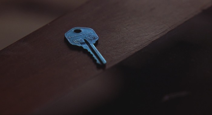 The man behind Winkie's, referenced in clue #9, is meant to portray the evil that festered from Diane's heartbroken jealousy. The funny thing is, this so-called "man," who is listed in the closing credits simply as "Bum," is actually played by an actress named Bonnie Aarons. (Most recently she played the demon nun in The Conjuring 2.) But it is this great evil, embodied by the bum's dirty visage, which shows up again at the end of the film, holding that same blue key, the hitman's marker. Effectively this is the key to Pandora's box. Note how Betty, the more innocent self, disappears, merging with her other amnesiac self, right before Rita uses the key to open the blue box in the dream. This box, with its black window into reality, opens up a world of hurt on Diane, unleashing the forces of guilt on her.