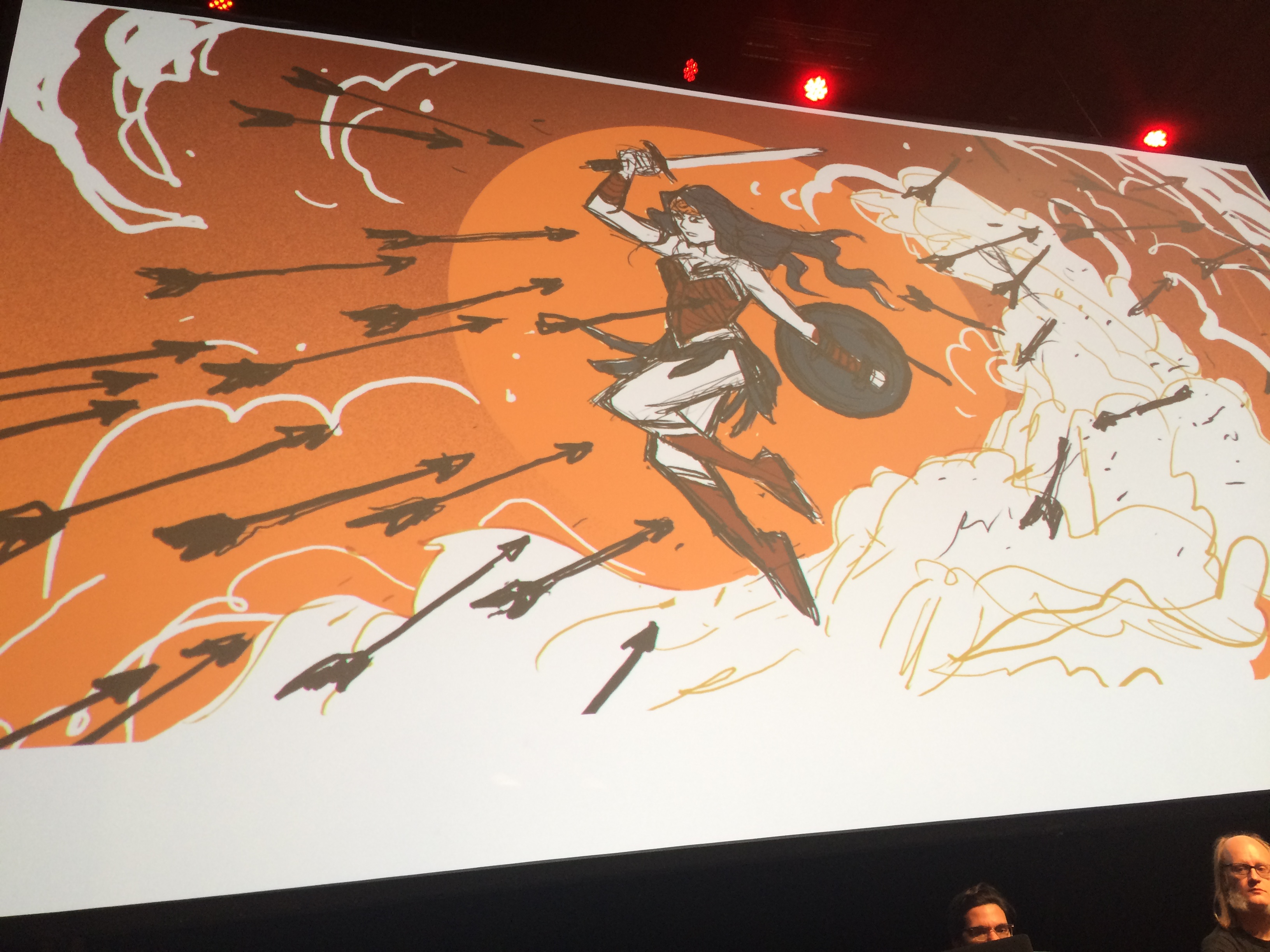 Speaking of pint glasses and studio notes, artist Becky Cloonan worked on a Wonder Woman pint glass that never came to fruition. First, the studio rejected the content of the art (they weren't happy with the classical approach of the first version or the arrows of the second). When the third version prompted a note asking them to make Wonder Woman smile, the decision was made to drop it altogether.