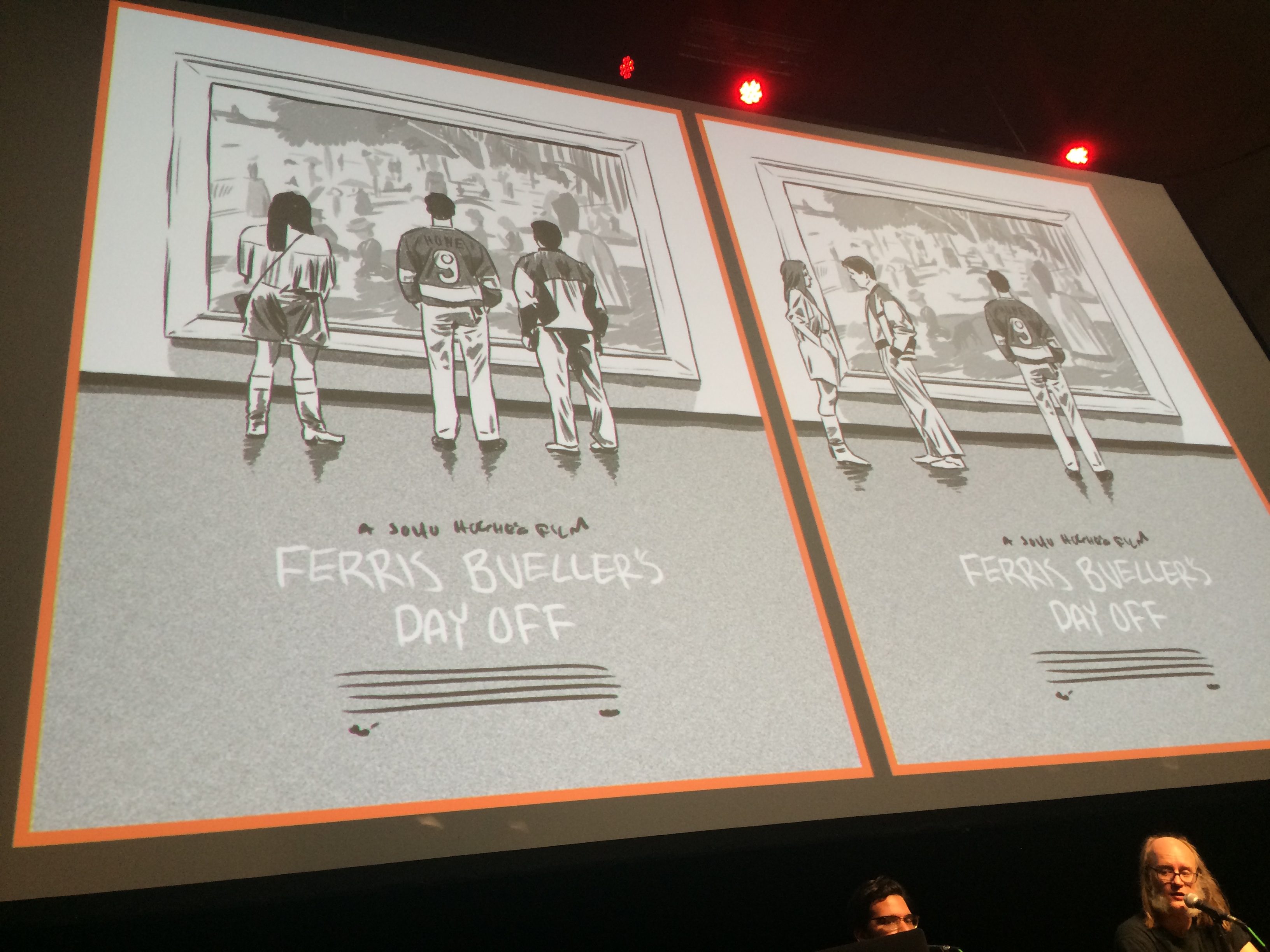 Matthew Woodson's subtle and brilliant poster for Ferris Bueller's Day Off never got beyond the stages seen below, torpedoed by both likeness rights and...sports jersey rights. Yep.