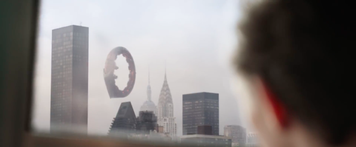 Another sky portal! This is a familiar element that we first saw in 2012's Avengers, but then again, that was also loosely connected to Thanos as well. This ominous sky portal hangs over Manhattan and is made out of some kind of machinery.
