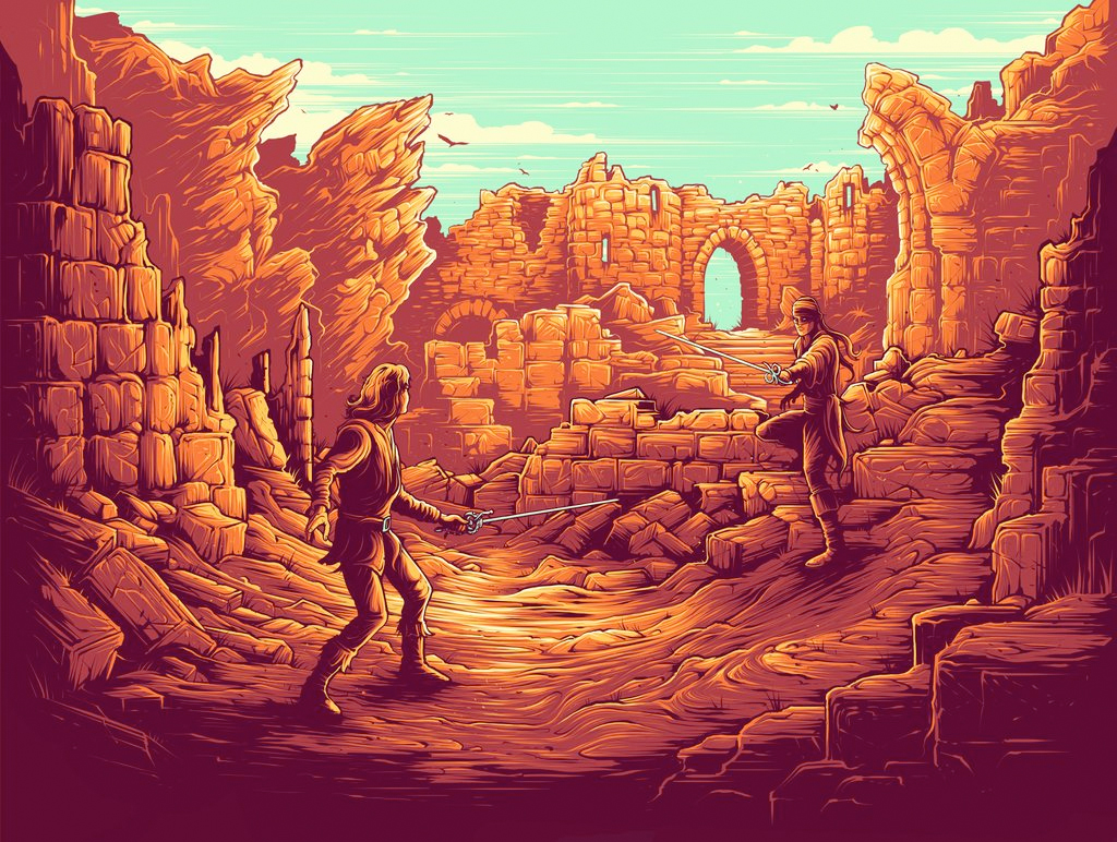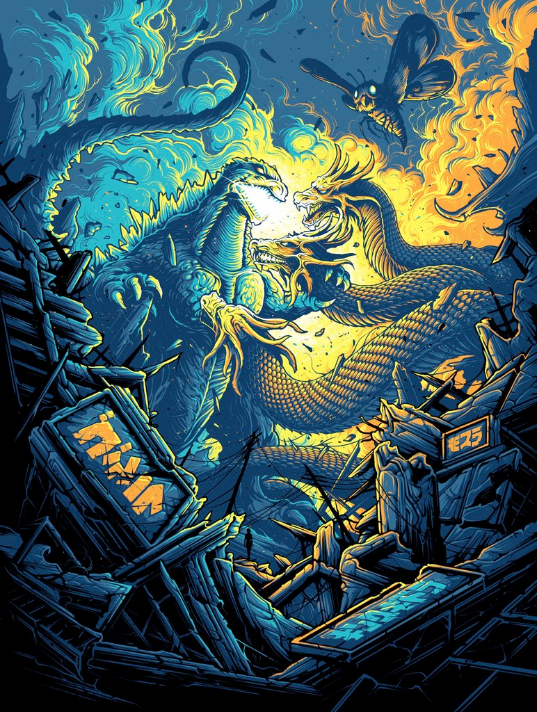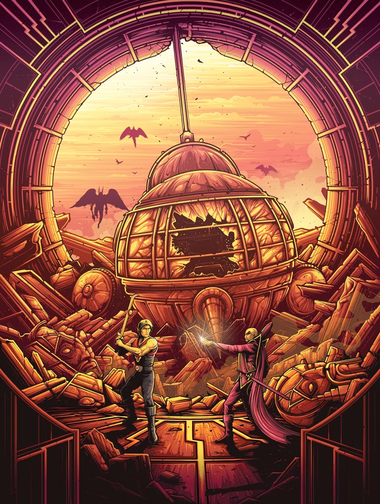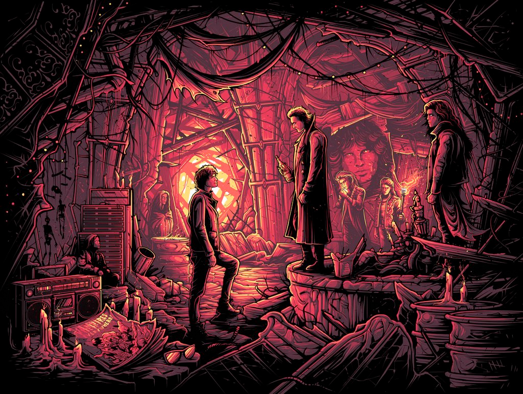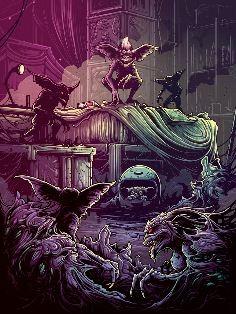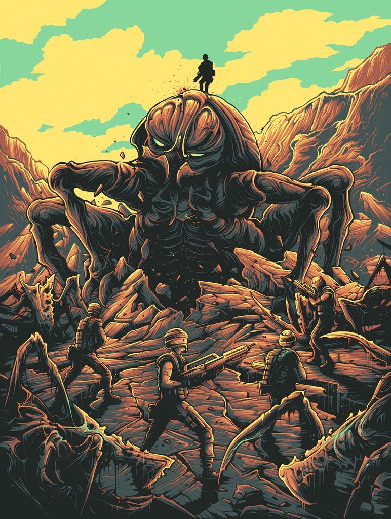 Dam Mumford's Chroma show features tributes to Jurassic Park, Edward Scissorhands, Starship Troopers, Close Encounters of the Third Kind, Die Hard, The Princess Bride and more. Check out all of the new Dan Mumford artwork from his gallery show below.