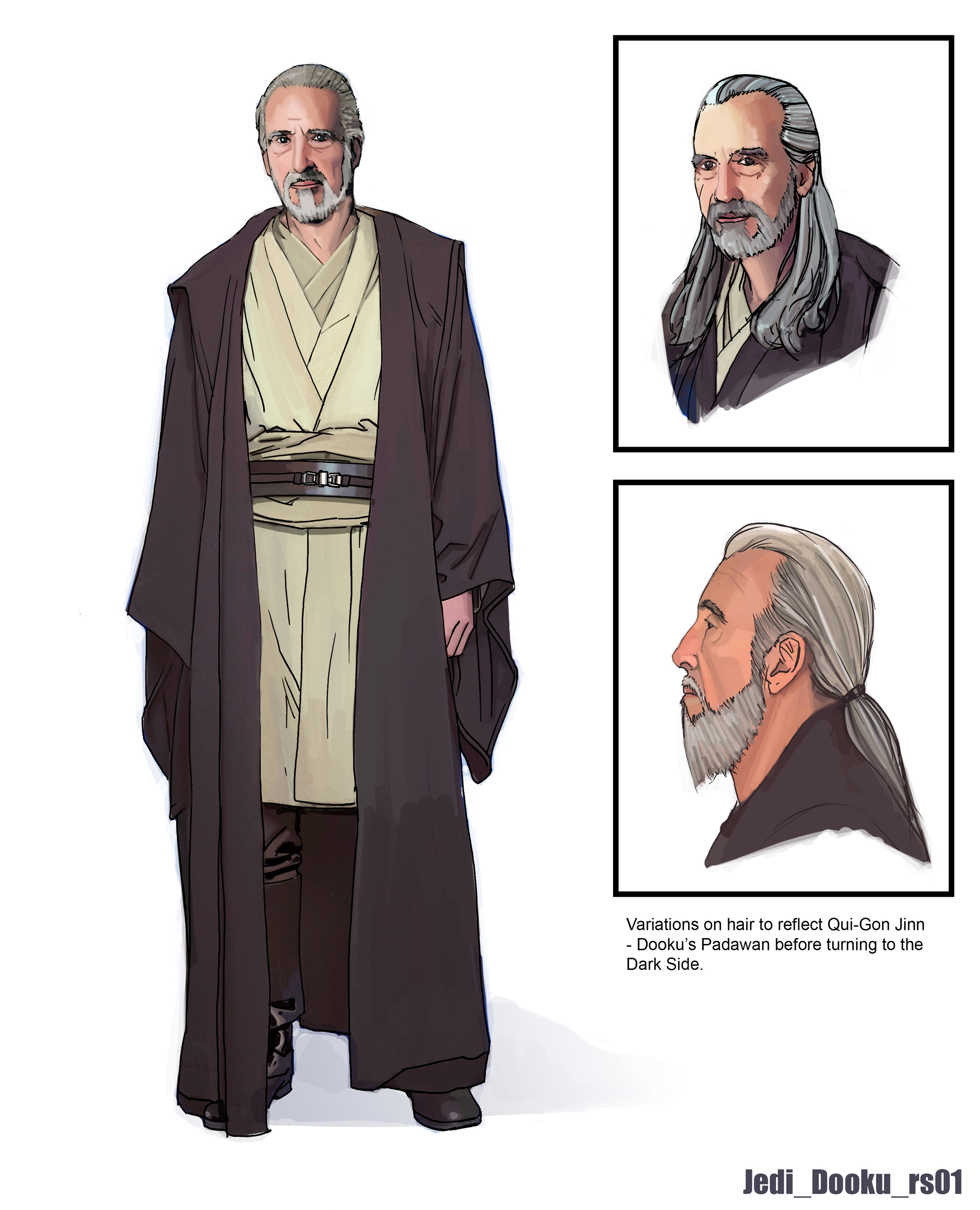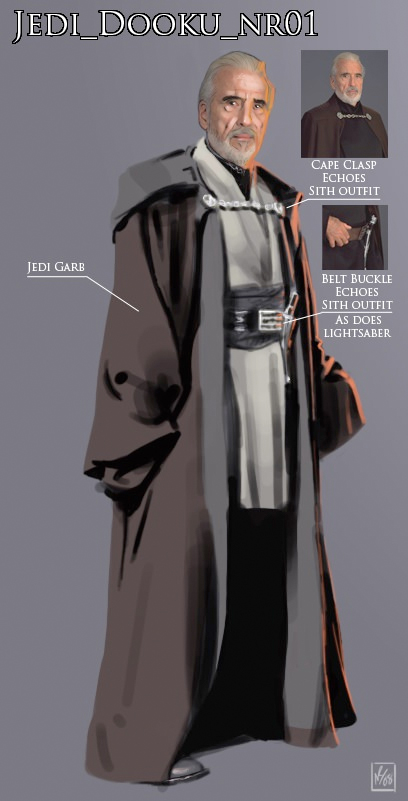 In this alternate timeline, there are also Sith who are Jedi. Count Dooku was once a Jedi in the prequel trilogy, so this isn't too difficult too imagine. But this is the first time we've seen the character in Jedi robes. The design on the left gives him a vibe as a replacement for Qui-Gon Jinn, who apparently wouldn't have been involved with this storyline at all.