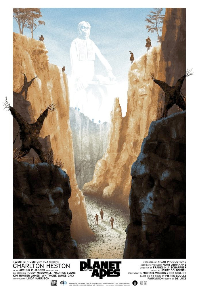 Meanwhile, the Anchorman print has a model ship called Diversity, some Sex Panther cologne, some Great Odin's Raven whiskey and a hand grenade. But the Planet of the Apes print is a little more subtle and satisfying with all of the hidden apes appearing in the artwork.