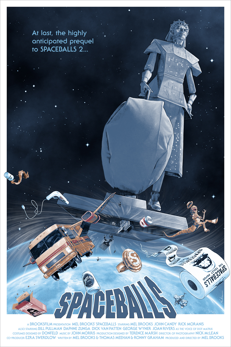 As you can see, Ape Meets Girl delivered some outstanding, detailed work with plenty of Easter eggs to be found. The Spaceballs poster has Spaceballs: The Toilet Paper, the ring of the Schwartz, a jar of jam (probably raspberry) and a Yogurt doll all getting sucked up along with the film's title by Mega Maid.