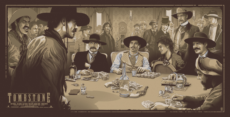 Vance Kelly brought some incredible work to the gallery too with his richly drawn Reservoir Dogs piece, this time as an artist proof, featuring a special burger place just outside the window. Then there's that fantastic Tombstone screen print with metallic inks, and the fiery print for The Crow.