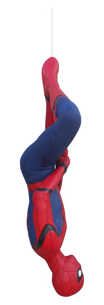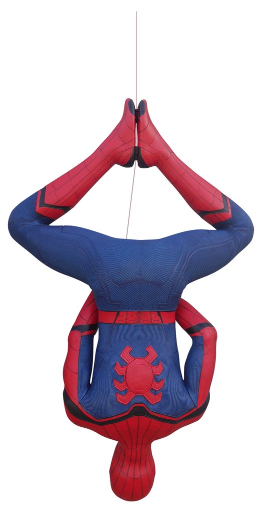 Next is the hanging version, which has Spidey in a pose that looks like it was ripped straight out the pages of a 1960s comic book. This one is a bit smaller at 57” tall, 35” wide, and 13” deep. Don't worry – the steel cable is included.
