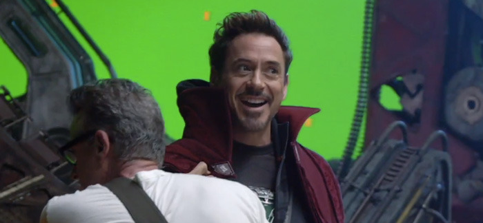 Plus, keep an eye out for a great shot of Stan Lee standing with Benedict Cumberbatch, Robert Downey Jr. and Tom Hiddleston, who all play characters the Marvel Comics legend had a hand in creating. There's also a shot of Tony Stark wearing Doctor Strange's Cloak of Levitation, which I've always though of as more of a cape than a cloak, but I digress.