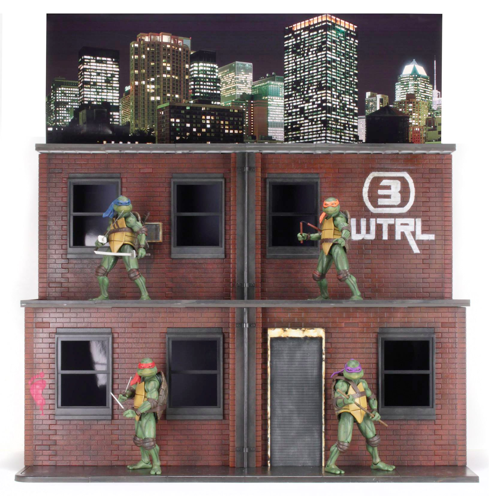 The box set of all four figures and accompanying accessories will be a San Diego Comic-Con exclusive this summer, limited to 5,000 sets, each costing $125. But wait – there's more! For those of you who want to display your figures in the coolest way possible, there's also a set of these figures that comes with a diorama backdrop that measures over 2 feet wide, over 18 inches tall. Check it out: