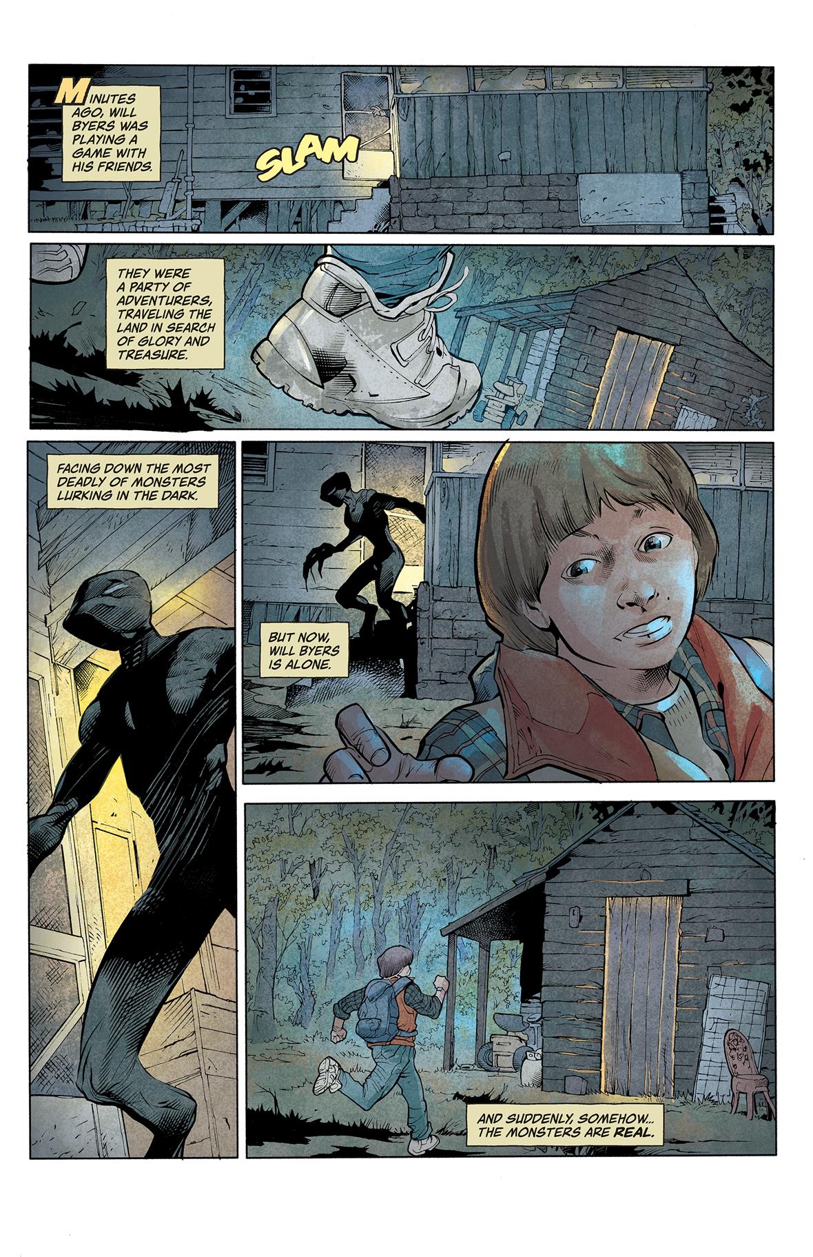 "Stranger Things #1 follows Will Byers as he enters a dimension of decay and destruction where he must use his wits and resolve to dodge the pursuit of the Demogorgon and escape the Upside Down."