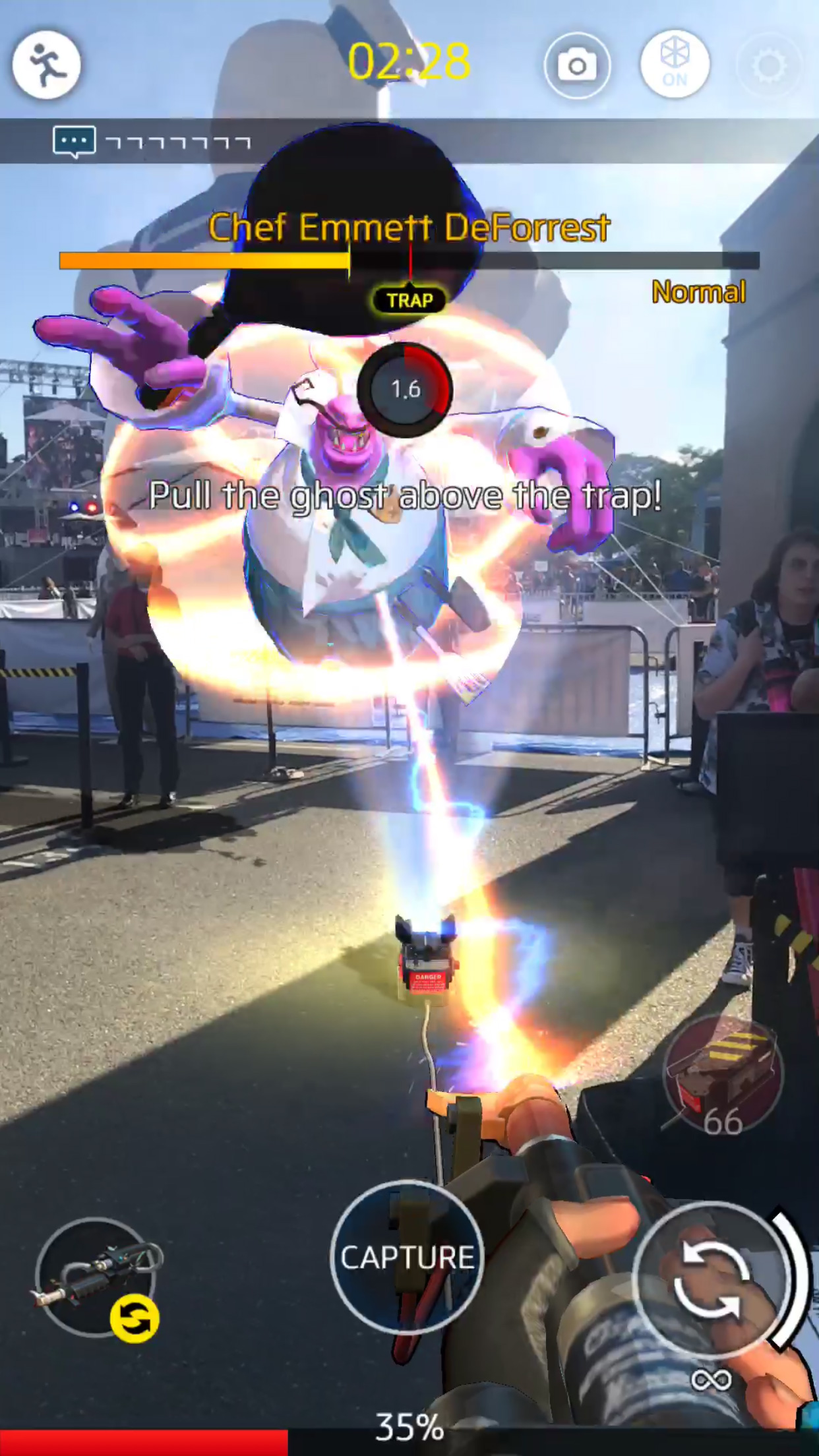 In addition to capturing ghosts around the real world (as well as hatching ectoplasms like eggs), the game also offers raid bosses that will allow players to capture huge ghosts, including the Stay Puft Marshmallow Man. Players will have to team up with each other in order to efficiently take down these bosses, and the battles are a little more involved than mere smashing your fingers on your screen. For example, the Stay Puft Marshmallow Man has the ability to create smaller marshmallow minions that you have to dispatch with. The boss attacks sometimes also require you to hit the ghosts in a certain spot to deflect an attack. The gameplay is much more involved and requires a little more skill and timing than Pokémon Go or even Jurassic World Alive.