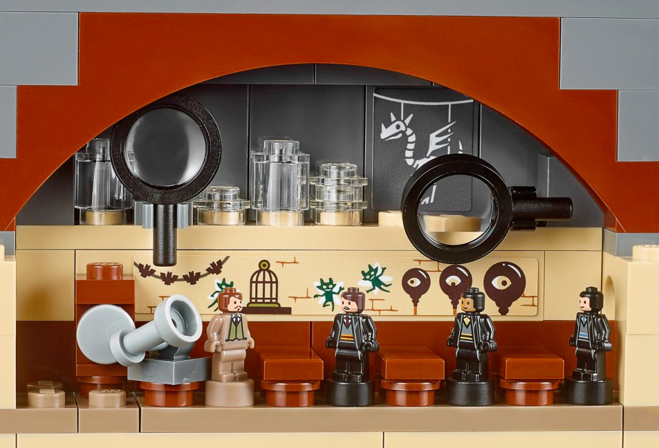 Upon closer inspection of the Harry Potter LEGO Hogwarts, some of that disappointment goes away. Check out all the rooms and details that have been included in this playset – towers, turrets, chambers, classrooms, students, professors, creatures...even includes the Whomping Willow and Hagrid's hut! Here are some of the finer details: