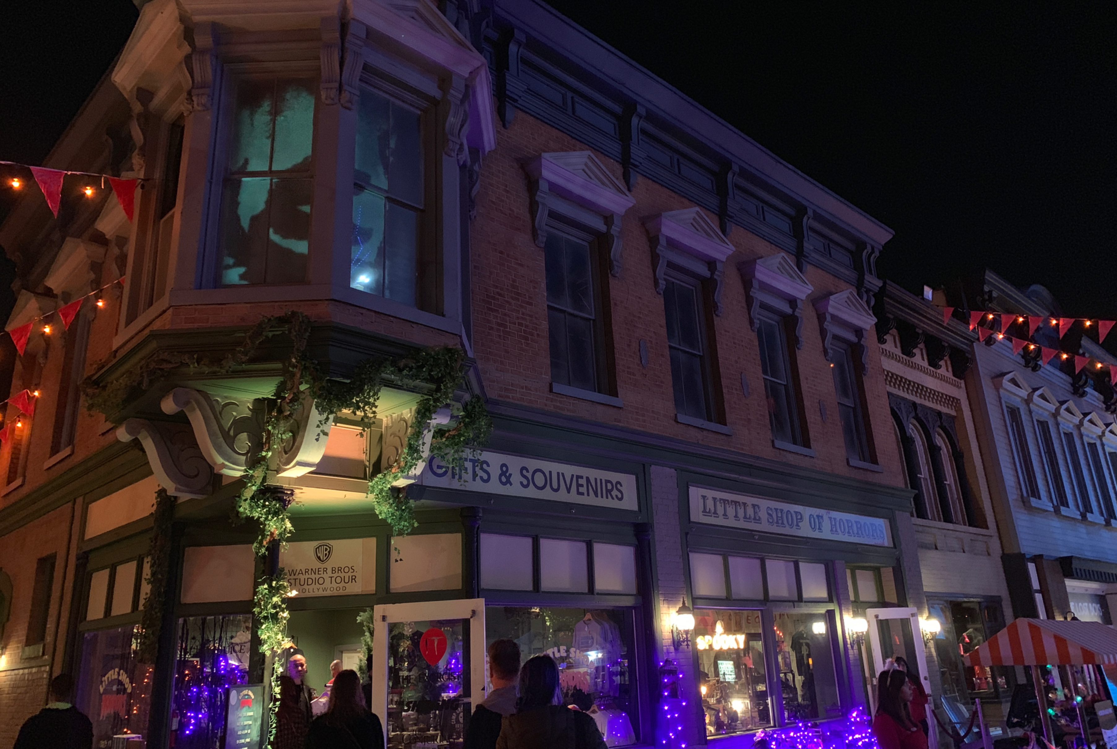 Look at the second story windows and you might see some iconic characters from Warner Bros' history of horror movies. At one point, a young woman drenched in blood ran through the streets screaming. It took me and my friends a few beats before we looked at each other and realized it was Carrie.