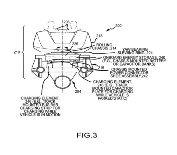 A common issue in reusing tracks for rotation carts is that the carts need a source of power as the ride goes to initiate the rotation. The new patent answers that question by having charging docks added to the loading and unloading areas as well as in a few locations throughout the ride. These charging stations will be added to the typical bus bar system that rides typically employ for charging.