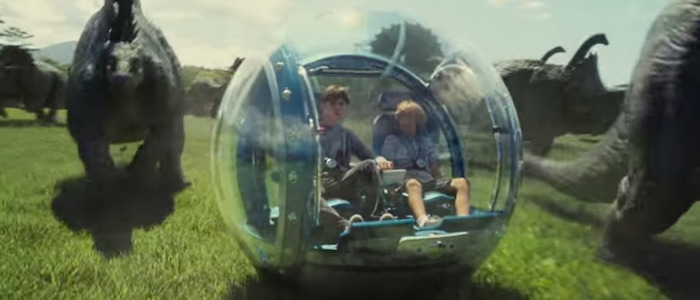 Let's start with the obvious. Franchise producer Frank Marshall has mentioned in the past that Universal has wanted to make a ride based on the gyrosphere vehicles seen in Jurassic World and Jurassic World: Fallen Kingdom. And here you go: a ride design that looks to place the rider within a spherical vehicle with a striking resemblance to what's seen on the screen. The technical jargon describes a ride that would provide all the physical thrills of being bounced around in a giant glass ball by angry dinosaurs: