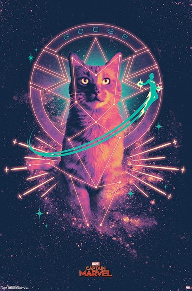 A batch of new promo posters for Captain Marvel feature the superhero and her adorable little cat Goose.