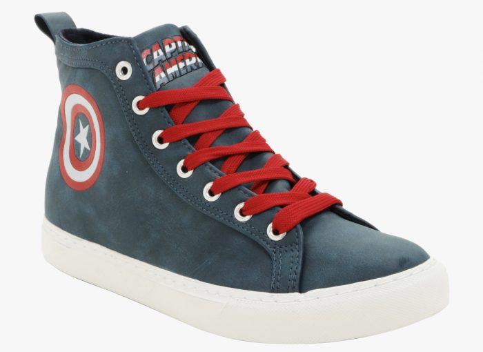You can be stylish, patriotic and nerdy at the same time with this new pair of Captain America high top sneakers.