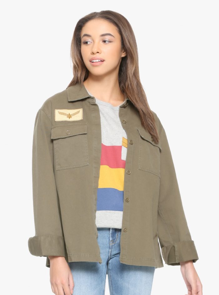 Get you army style and love for Captain Marvel on before the movie arrives in March with this ladies jacket.