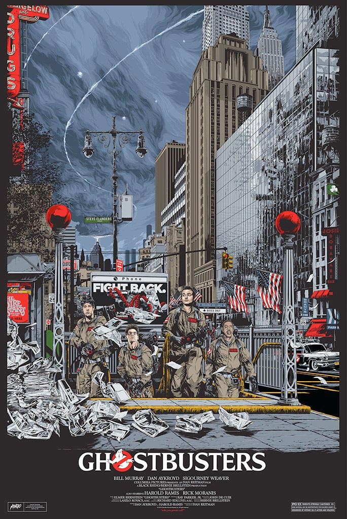 Here's Ken Taylor's new Ghostbusters print from Mondo, and it won't be too hard to get your hands on the regular version (left). It's a timed edition, so however many are ordered, that's how many will be printed. It's a 24x36 screen print that will cost you $55 and will be on sale for 72 hours starting today at 1pm ET/10am PT. On the right side is the variant, which will have a limited edition of 300 and will cost you $75.