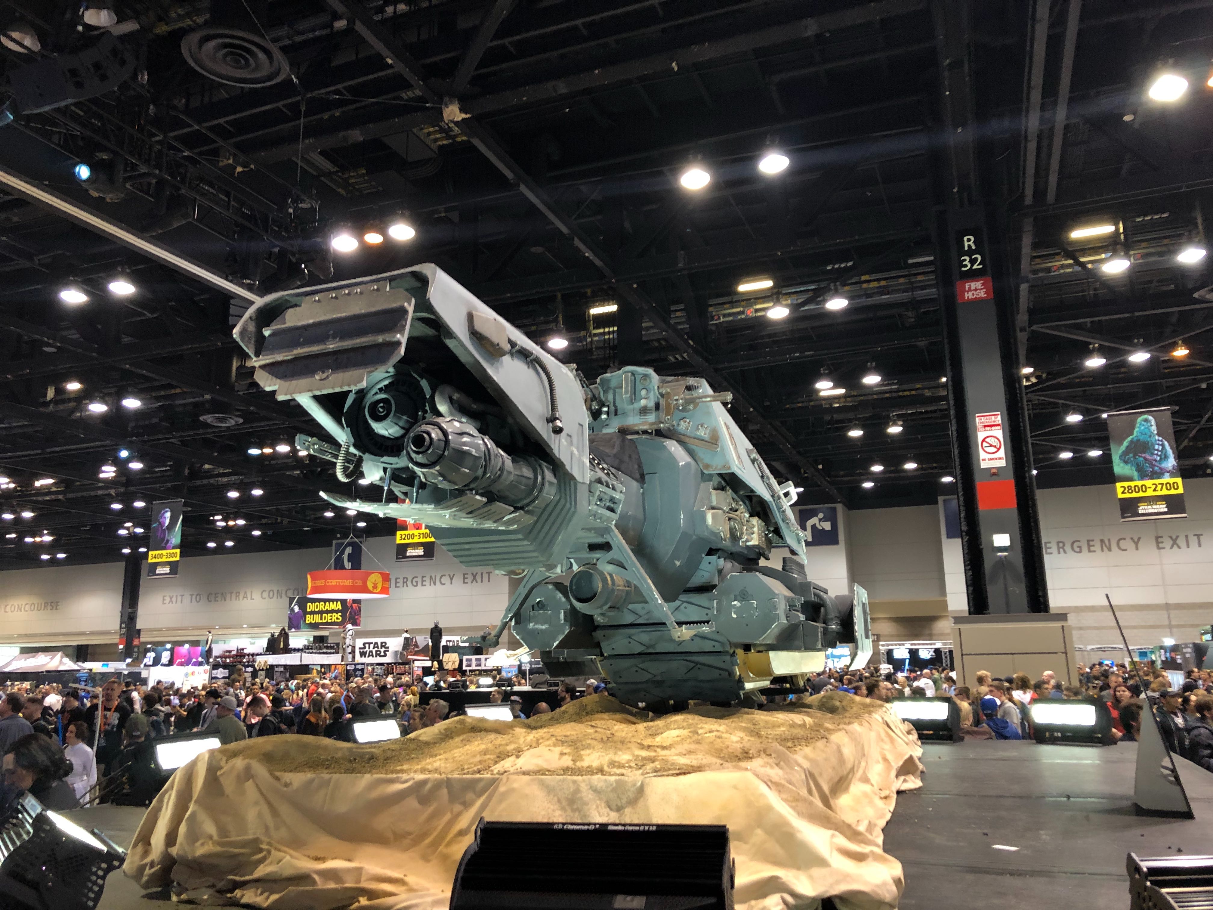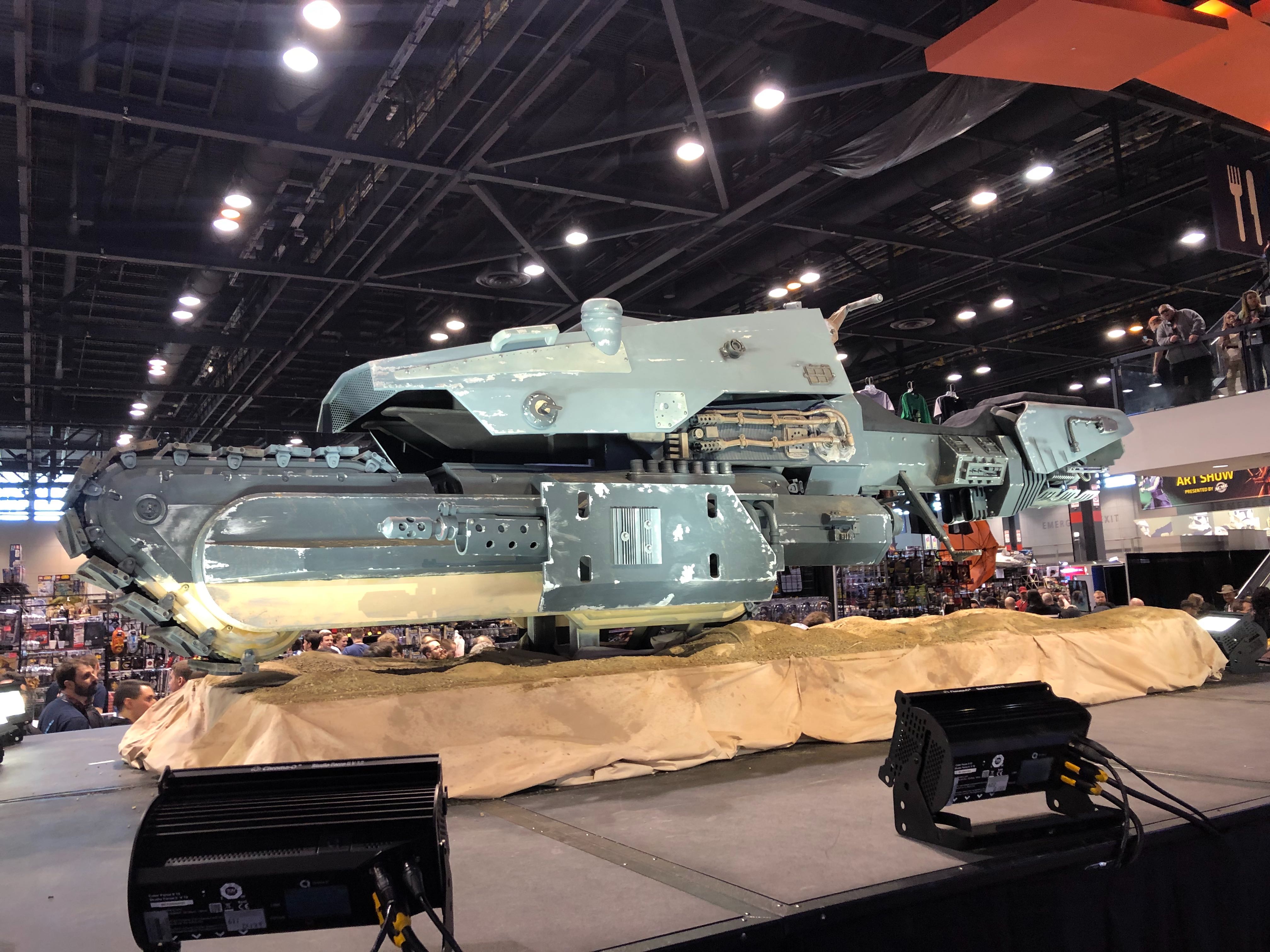 And now, we have a close look at one of the new vehicles introduced in Star Wars: The Rise of Skywalker – the First Order Treadspeeder, which was on display at Star Wars Celebration in Chicago.