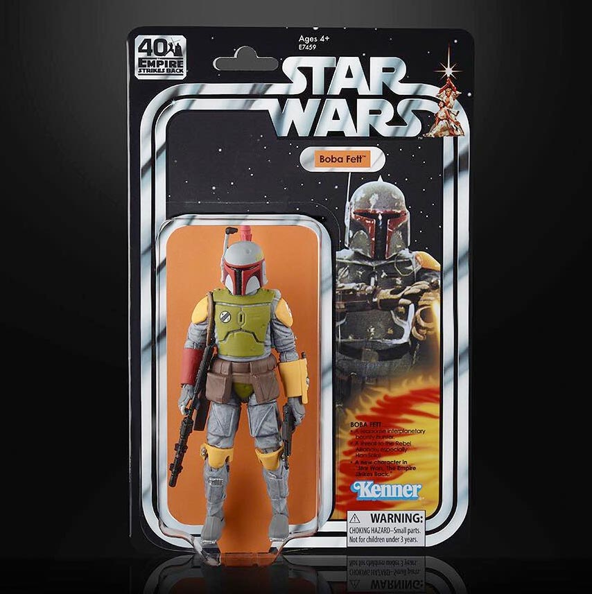 Another Black Series figure on the way will be a a little harder to find. Boba Fett is getting a Black Series makeover in the style of the original 1979 Kenner action figure released before The Empire Strikes Back hit theaters. Hasbro has taken the regular Boba Fett Black Series figure and given him a vibrant, colorful makeover, and the packaging is a throwback to the vintage style cardback.