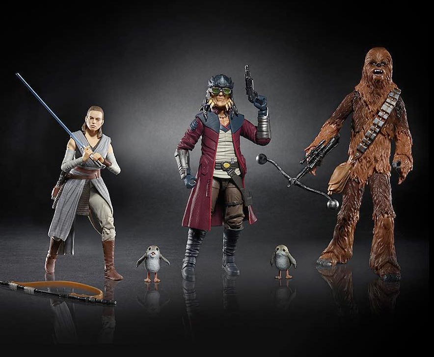 First up, the Millennium Falcon ride Smuggler's Run will get a Black Series figure pack that includes Rey in her wardrobe from The Last Jedi, Chewbacca, and two adorable new little Porgs. But the real draw is the first ever Black Series figure of smuggler Hondo Ohnaka, who will be a prominent figure at Galaxy's Edge.