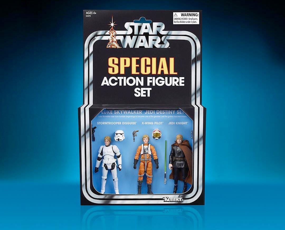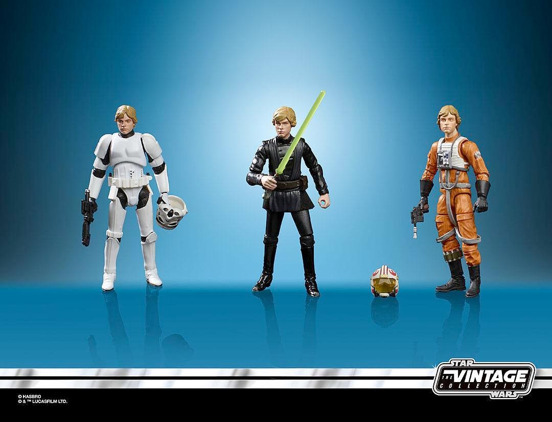 Finally, it really is the rise of Skywalker at Comic-Con this summer as Luke Skywalker is getting a new 3.75-inch Vintage Collection three-pack featuring new versions of the Jedi in Stormtrooper disguise, in full Return of the Jedi wardrobe (complete with cloak), and X-wing pilot gear. The packaging is a throwback to classic packaging, even though the head sculpt is a new, more detailed version of Mark Hamill.
