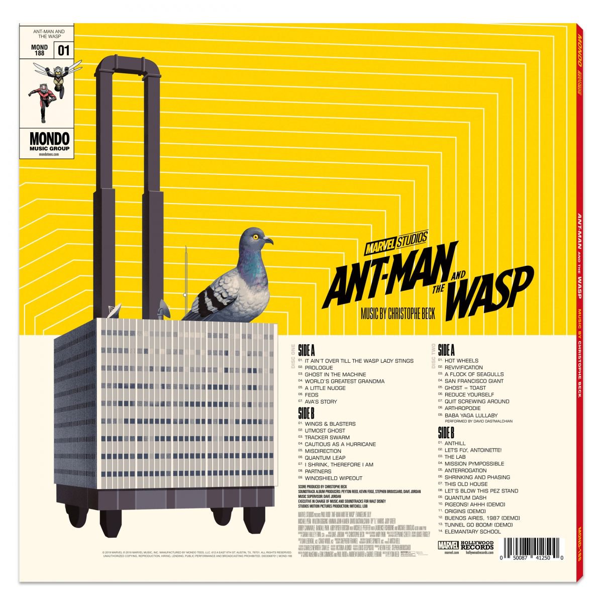 Marvel Studios' Ant-Man and The Wasp – Original Motion Picture Soundtrack pressed on two 180 Gram Colored Vinyl, will be available to purchase for $35 starting April 24, 2019 on MondoTees.com. See the full track list below.Disc One