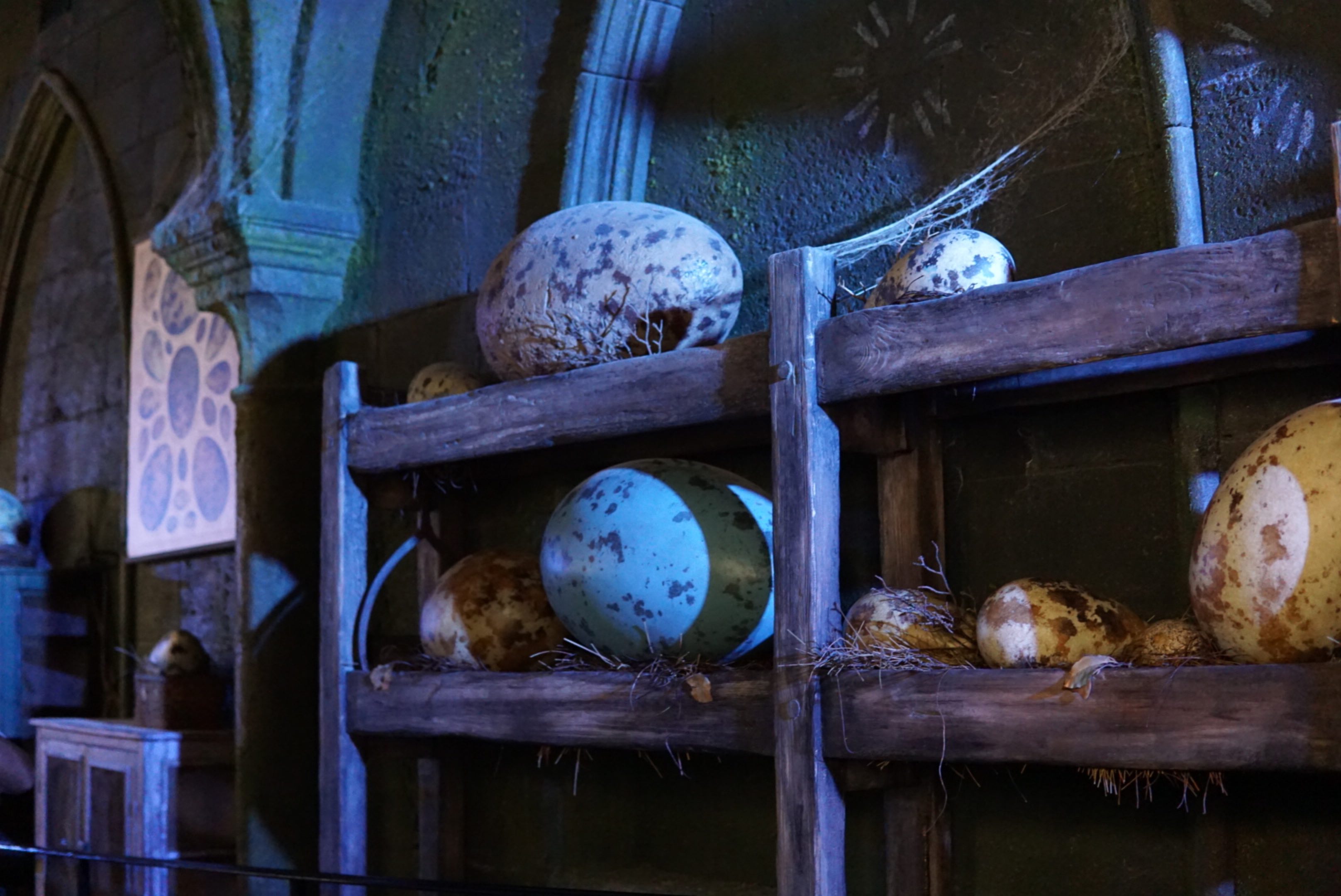 The theming in the ride queue is on par with anything else in the Wizarding Worlds. The only negative element is that this particular location is not featured in the films or books and was invented for the attraction, so it can't utilize exciting props and locations we recognize. Instead, the queue focuses on the idea of the magical beasts, but I think that will be good enough for most. There are fewer photo ops in line than in the other two big Potter attractions – the ride here takes center stage.