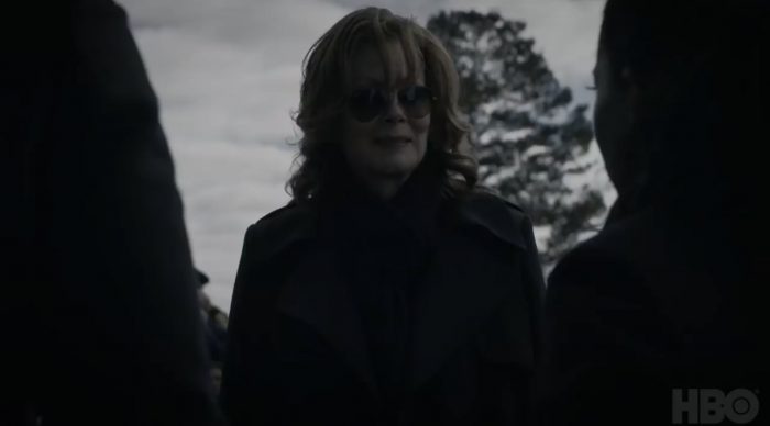 Cut to a soldier in uniform telling another little girl that "people who wear masks are dangerous ... because they're hiding something." We see policemen in masks, unloading suspects in a garage as Jean Smart from FX's Legion looks on.
