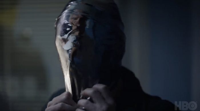 The words "HBO Presents" appear onscreen, with the second word ticking forward like a clock hand. From here, the trailer introduces us to Don Johnson's police chief, Judd Crawford, who helps walk us through what's happening in this world. Vigilantes have come out of hibernation, with a gun-toting militia in Rorschach masks staging "coordinated, simultaneous attacks at the homes of Tulsa PD."