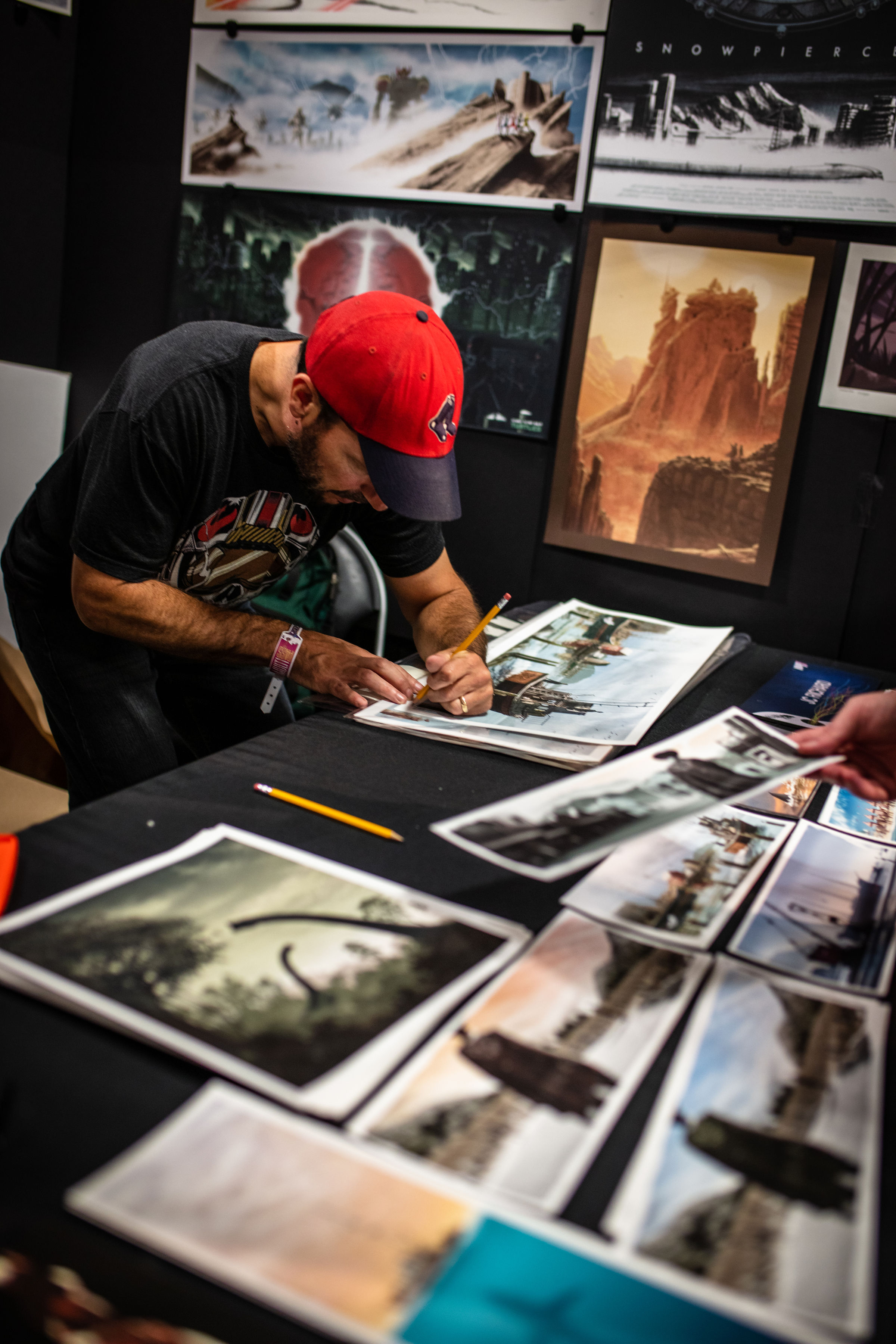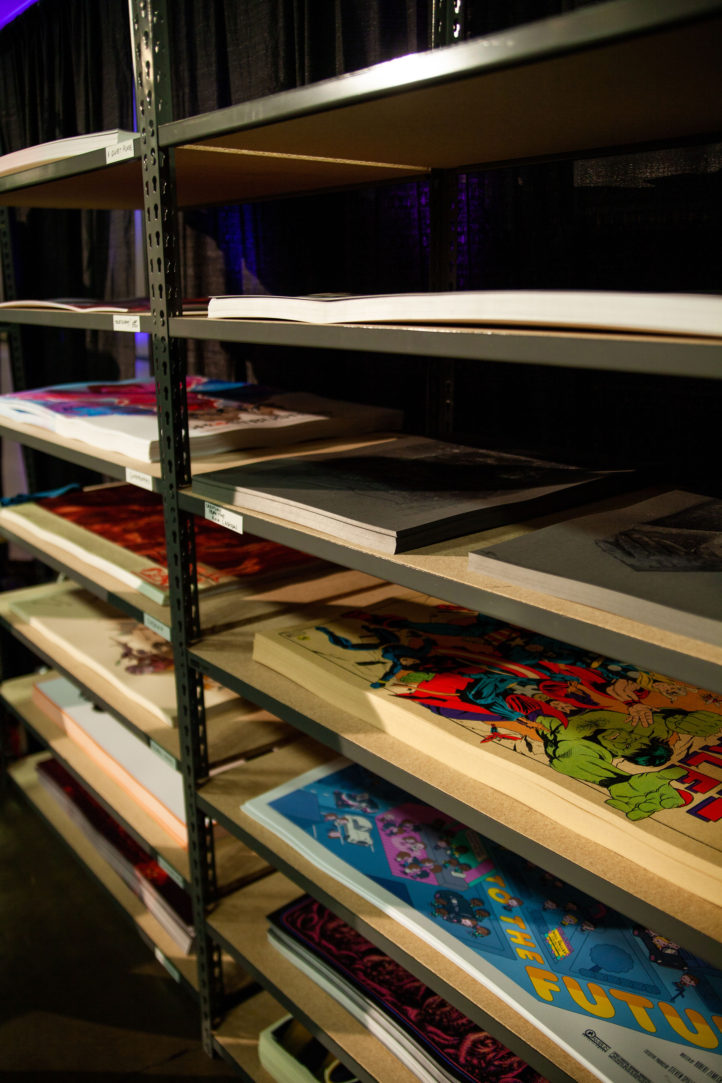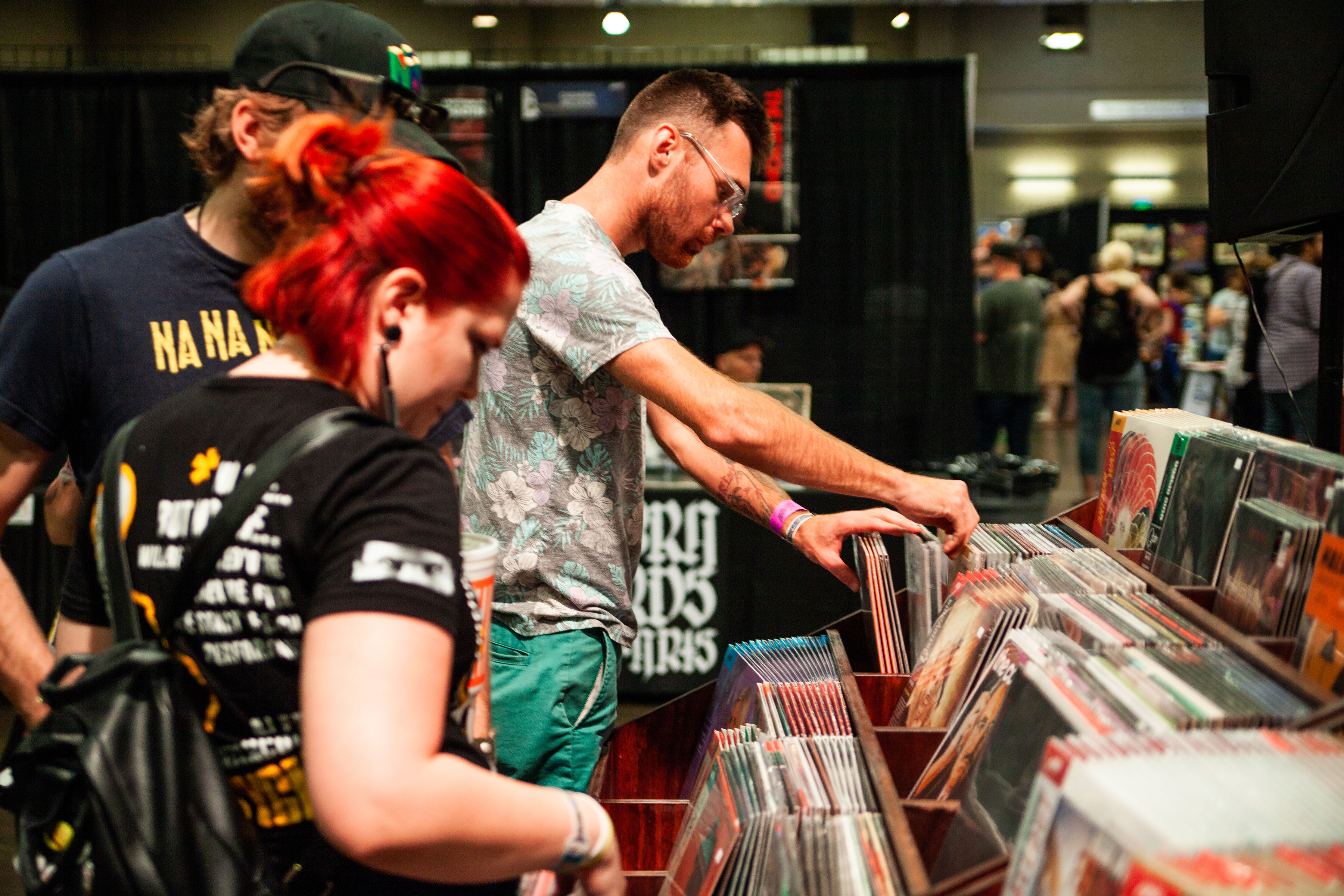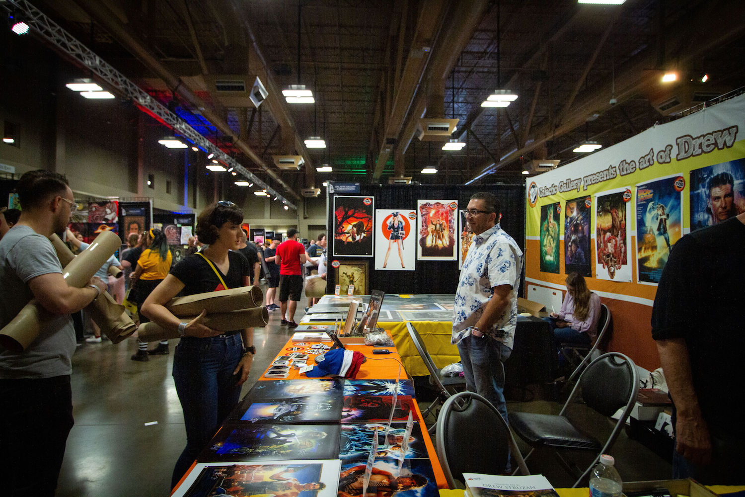 The last MondoCon was in 2017 and held at The Austin Statesman. While this space was effective given its large size, it was somewhat segmented with different halls. This year, MondoCon was held at The Palmer Events center — an event space that also holds such annual events such as the Oddities and Curiosities Expo and Austin's annual Record Convention. It's a huge, wide-open space allowing guests to openly wander and easily access all vendors, panels, and amenities. Parking was also ample due to the adjacent garage. Artist booths were set up in rows while sections were brightly projected onto the walls to convey where the vinyl, artists, Mondo booth, and restrooms were located. Right outside the west doors of the building were an array of food and drink vendors such as Southside Flying Pizza, The Peached Tortilla, Lucky Lab Coffee, and Austin Beerworks. If none of those spots struck a chord, visitors can walk across the street to either Black's BBQ or El Alma. There's also the lovely and relaxing Butler Park right next to the Palmer where you could lay in the grass, stroll around, or even walk to the trails that backup to Austin's Lady Bird Lake. This year honestly had the best space both internally and externally for MondoCon.