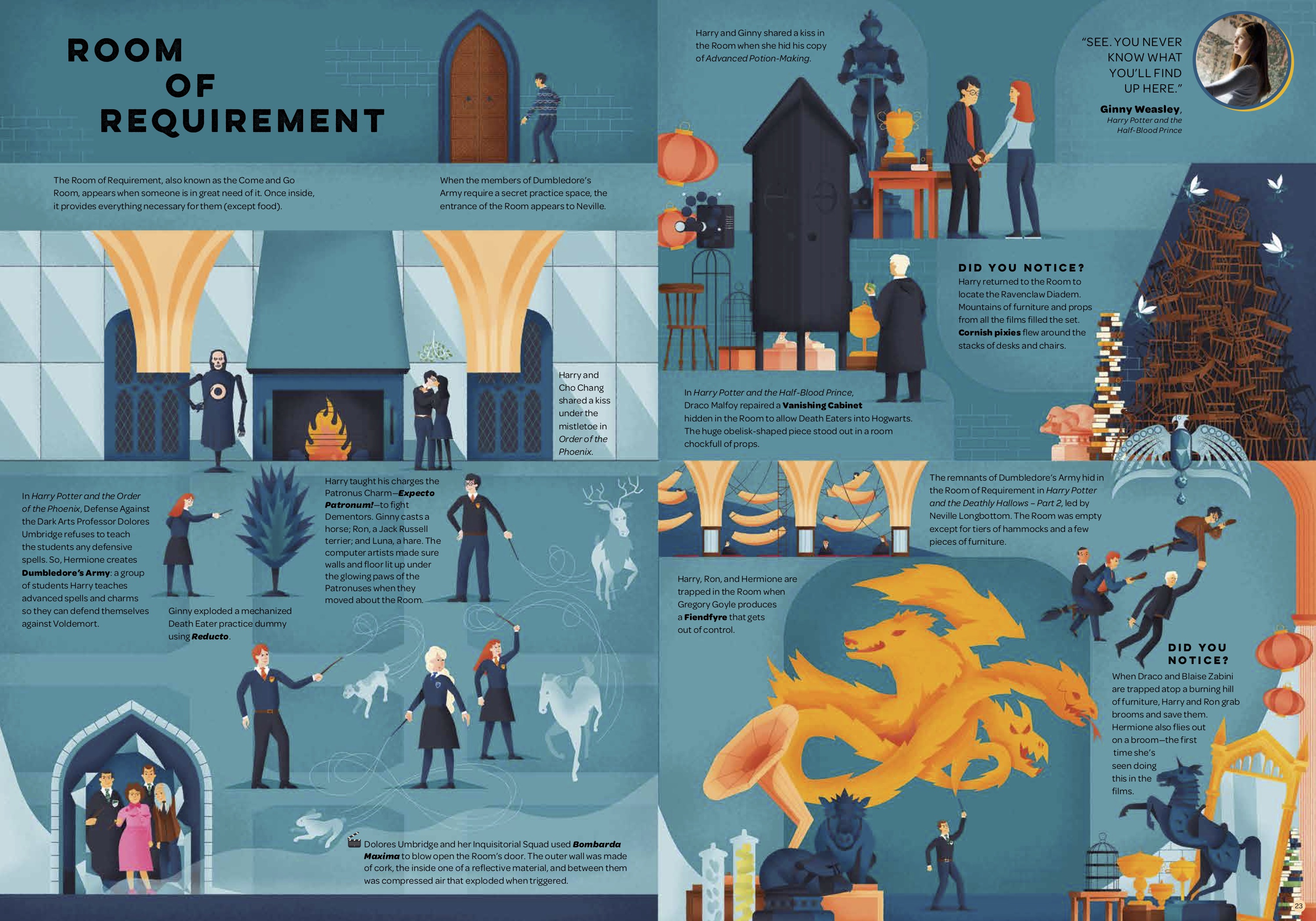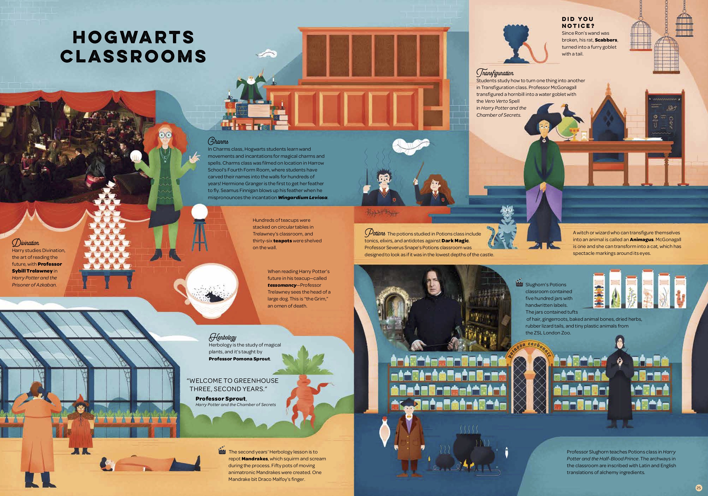 Still, that's not to say there isn't any magic left in visiting Hogwarts once again. The illustrations are charming enough to set Exploring Hogwarts apart from other behind-the-scenes guides, and there are enough new fun facts and trivia to appeal to the oldest Harry Potter fan. Did you know the 500 jars in Slughorn's Potions classroom contain tufts of hair, ginger roots, baked animal bones, dried herbs, rubber lizard tails, and tiny plastic animals from the London Zoo? Or that the 18 desks in the Defense Against the Dark Arts classroom were replaced with bigger versions as the actors grew, but the beds in the dorm rooms were not? Neither did I!