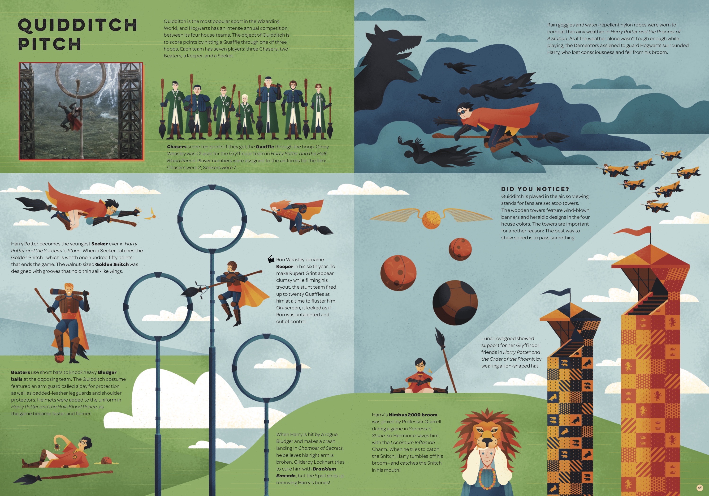 Simply designed with a comic-strip illustration style, Exploring Hogwarts retreads a lot of old ground, taking the reader through a tour of campus and Harry's seven years at Hogwarts. In between bright illustrations that resemble a cross between Chris Ware and a children's book, Exploring Hogwarts doles out tiny nuggets of trivia about the production design of the Harry Potter film franchise, often underneath charming flaps that can be lifted off the page. But many of the fun facts are already widely known, such as the rudimentary map that Potter author J.K. Rowling sketched for Stuart back in 1999, or the effects used to make books float.