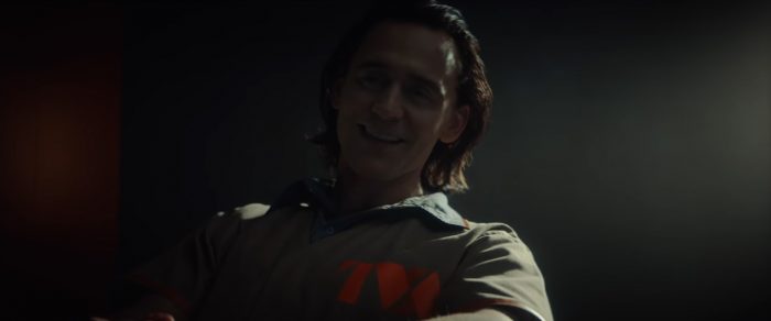 Tom Hiddleston playfully and threateningly says just one line, "I'm gonna burn this place to the ground." What he's wearing looks like some kind of prison suit, and considering the threat he's made, it would seem as if Loki is being held against his will somewhere. In fact, this shot just might let us know who is holding him.