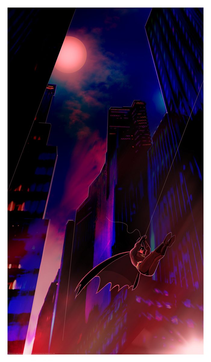 The Batman Beyond print has a techno sort of feel to it thanks to the visuals of the city behind him while the Batman: The Animated Series print has just enough of the show's style mixed with Chilcott's artistic touch.