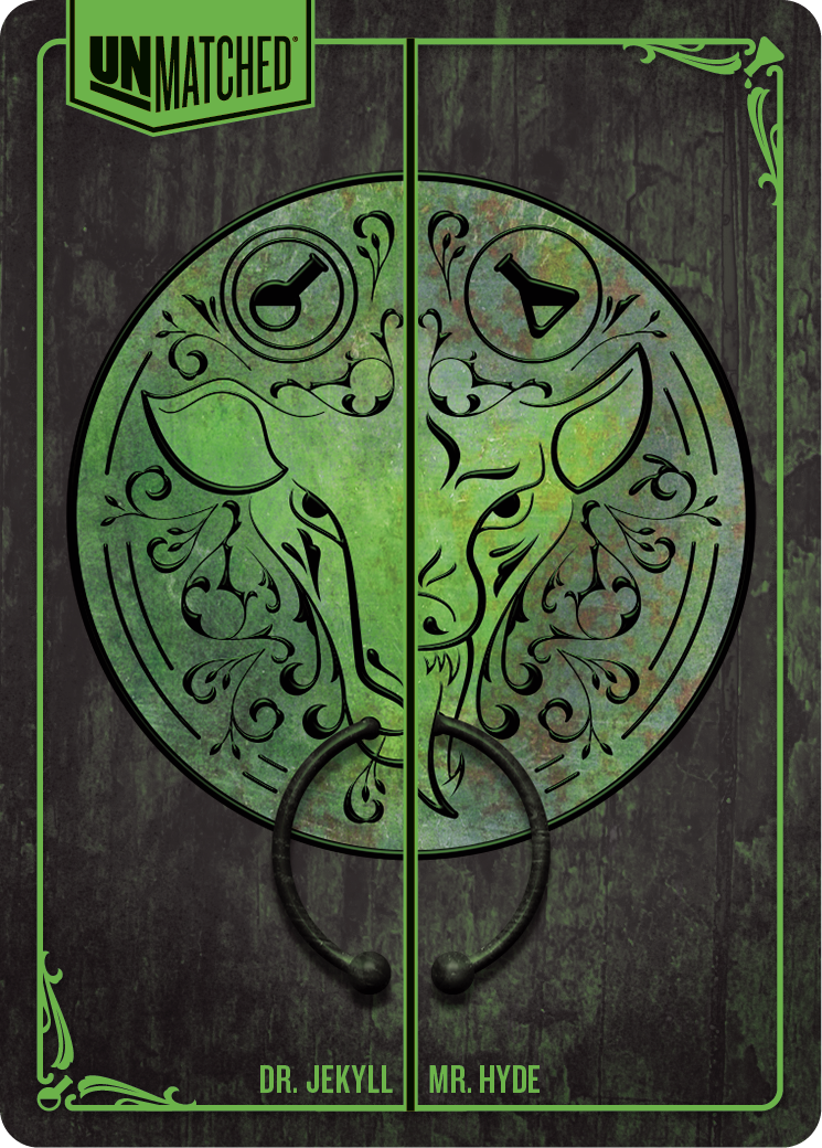 Much like how Alice from the Unmatched: Battle of Legends set can swap between "big" and "small" using a cardboard token, Jekyll/Hyde players can flip their token if they want to make use of the doctor's defensive, utilitarian style of play or hit their enemies hard as his psychotic counterpart.