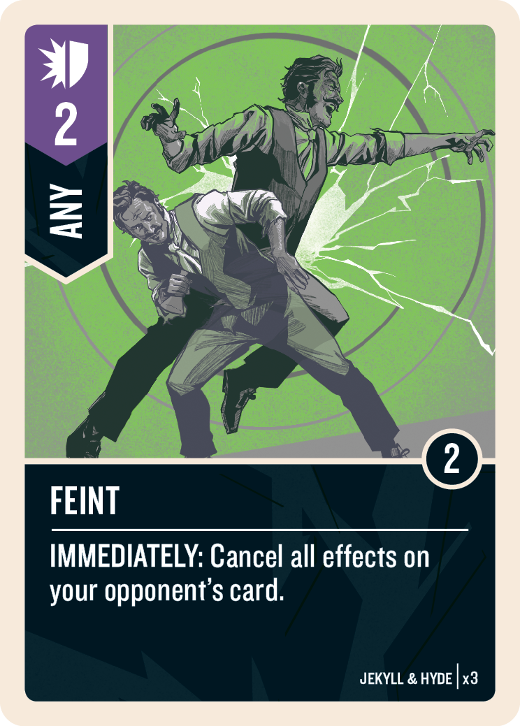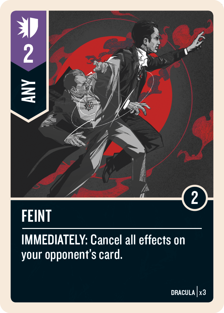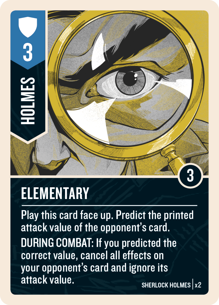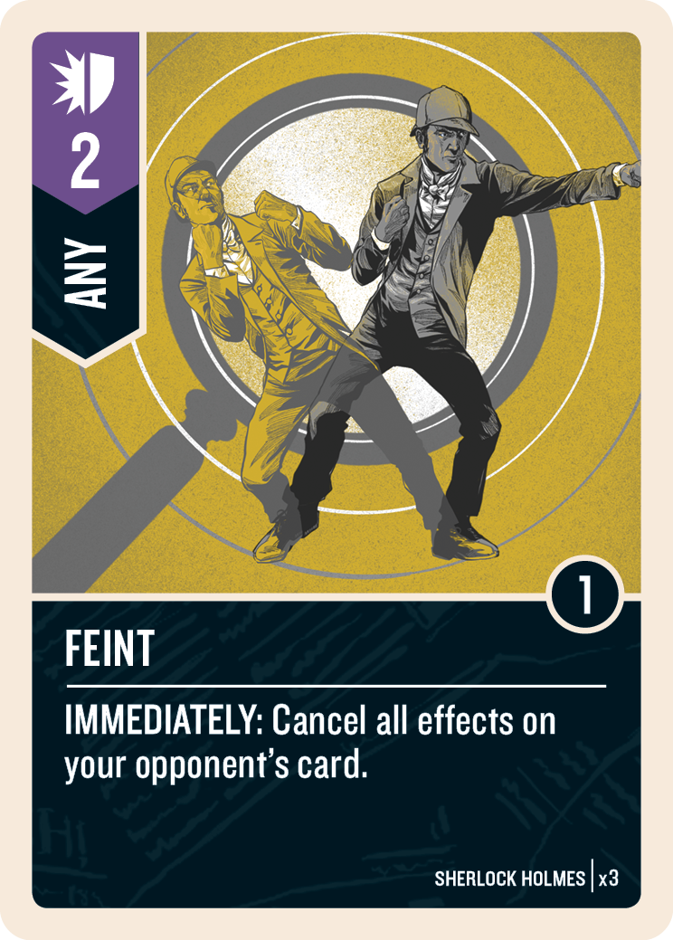 "Sherlock is smart. He can deduce what's going on and he can't be fooled. So his effects can't be canceled. If you play a feint on him, he's like, 'Nope, I knew you were going to play a feint, and my effect still goes off.'"