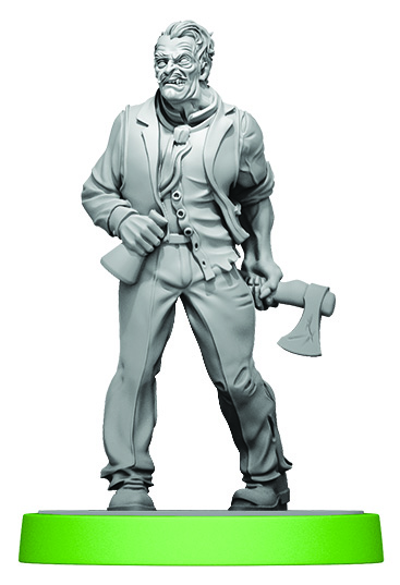Even the miniature is thematically appropriate, with Jekyll and Hyde existing within the same hunk of plastic, two personalities tearing one body to pieces. "He's split left and right," Daviau says. "So on this side, he's Jekyll, he's holding a flask, his face is normal, his foot is straight. And then if you turn him around the other way, he's Hyde. He's got an axe, his mouth – it's like Two-Face. His mouth is in a rictus on that side, his pants are more creased, and his leg is back at an awkward angle."